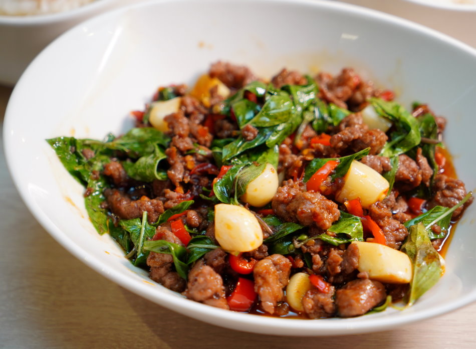 ▼以和牛為主,搭配蒜頭、打拋葉、辣椒及特調醬料下去炒製,吃起來肉質鮮嫩多汁,微辣開胃、鹹香下飯,讓人忍不住多吃一碗飯不誇張。