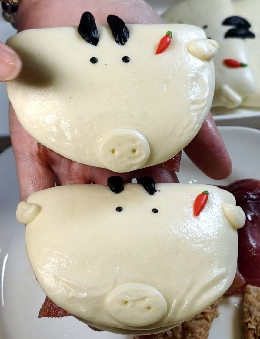 ▼牛二哥刈包+蜜汁富貴雙方,這道是新推出的餐點,可愛的牛二哥竟然化身為刈包啦~~採用北海道鮮乳與頂級麵粉製作,旁邊還有討喜的小辣椒,真的是可愛爆擊!!!