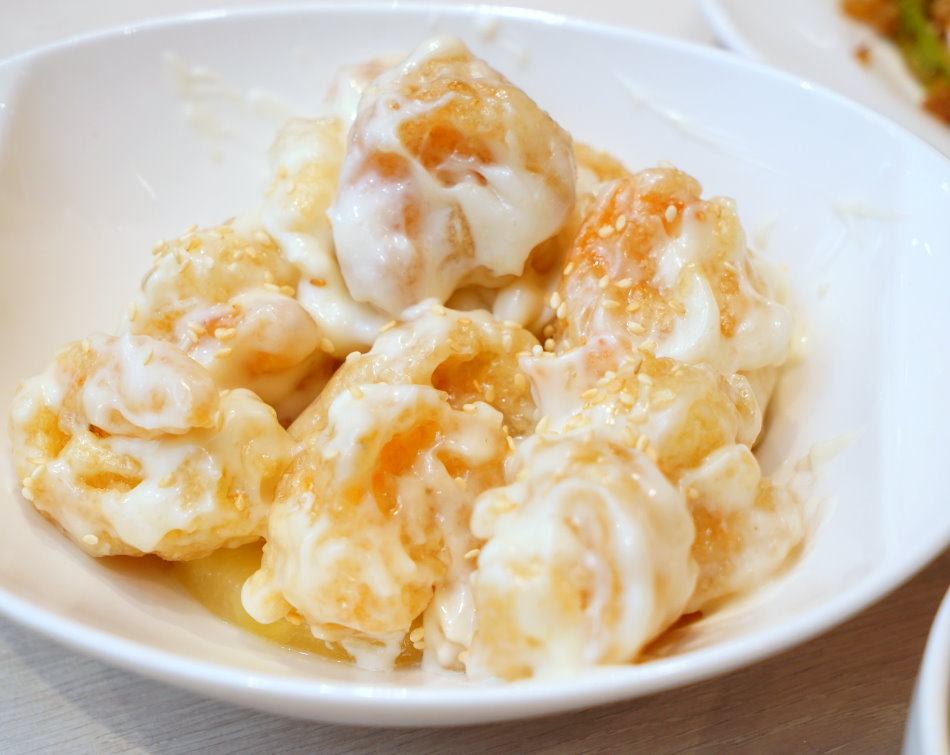 ▼就是酥炸鳳梨蝦,這款就是大人小孩都愛的鳳梨蝦球,這裡的蝦球超大一顆,微酥鮮美的飽滿口感搭配酸甜的美乃滋更是香滑順口,底層還有鳳梨片可供解膩。