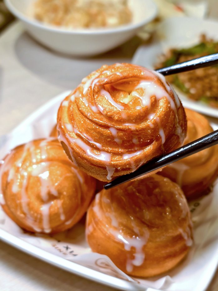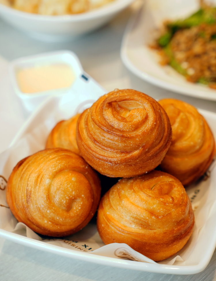 ▼酥炸銀絲卷外皮香酥、裡頭綿密,搭配煉乳吃起來甜滋滋的好幸福。