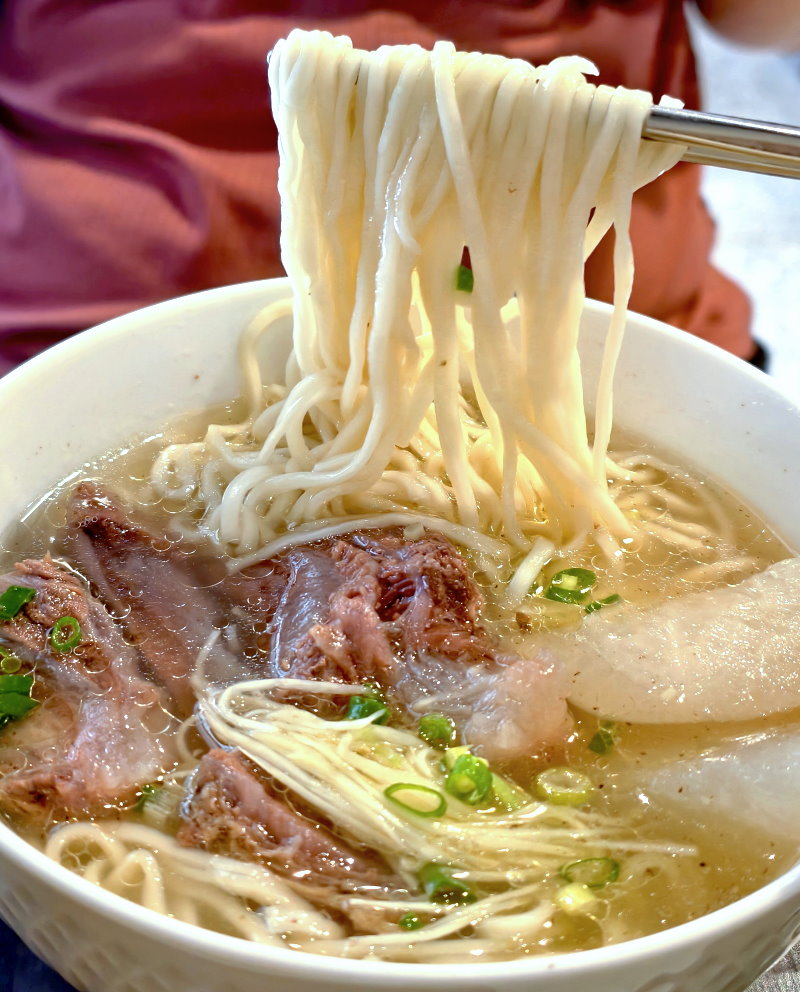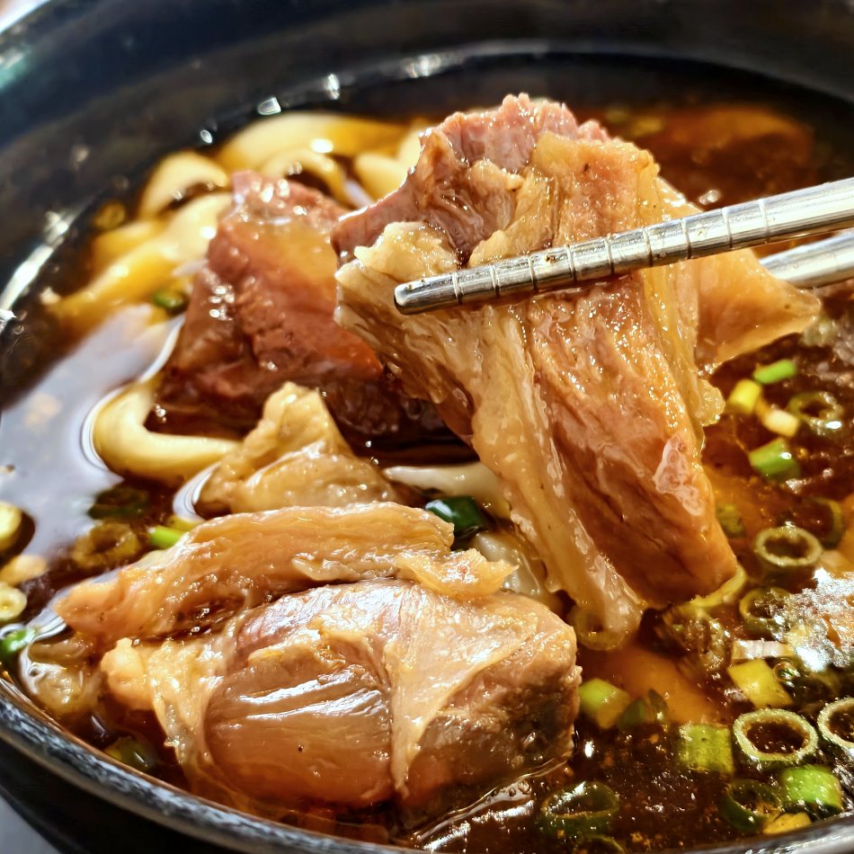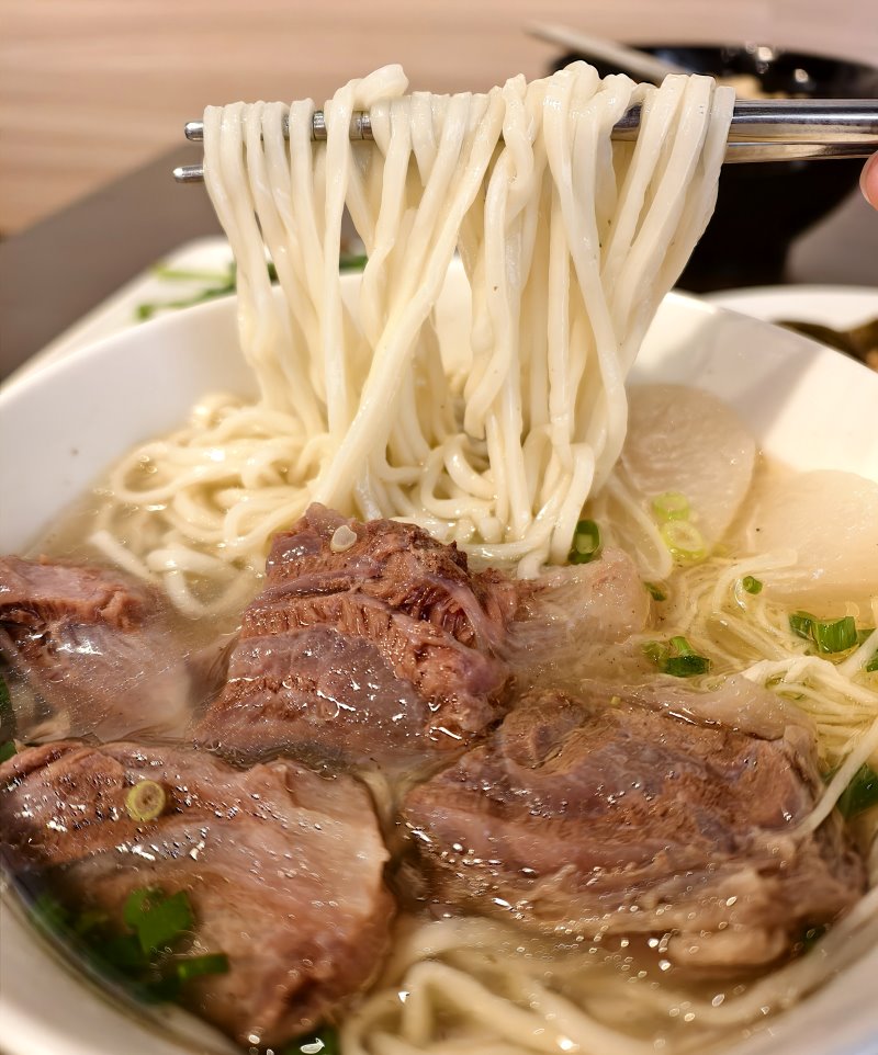 ▼寬麵Q滑帶勁,泡久了也比較不容易軟爛,搭配紅燒湯頭很可以。