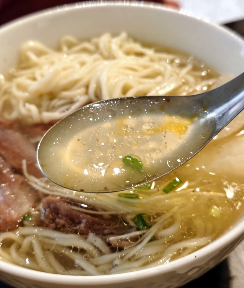 ▼湯頭帶點微微牛骨香氣,清澈甘甜,沒有過重的調味,算是比較清淡風格,吃起來跟小巷子清燉牛肉麵有點類似,我們還是比較偏好洄味牛肉麵的清燉牛肉麵。