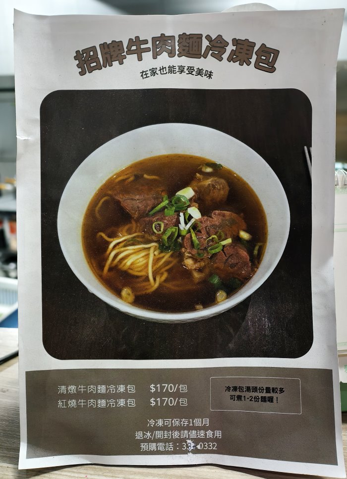 ▼店家也有推出牛肉麵冷凍包,份量較多,可以煮1~2份麵,想在家享用招牌牛肉麵也沒問題。