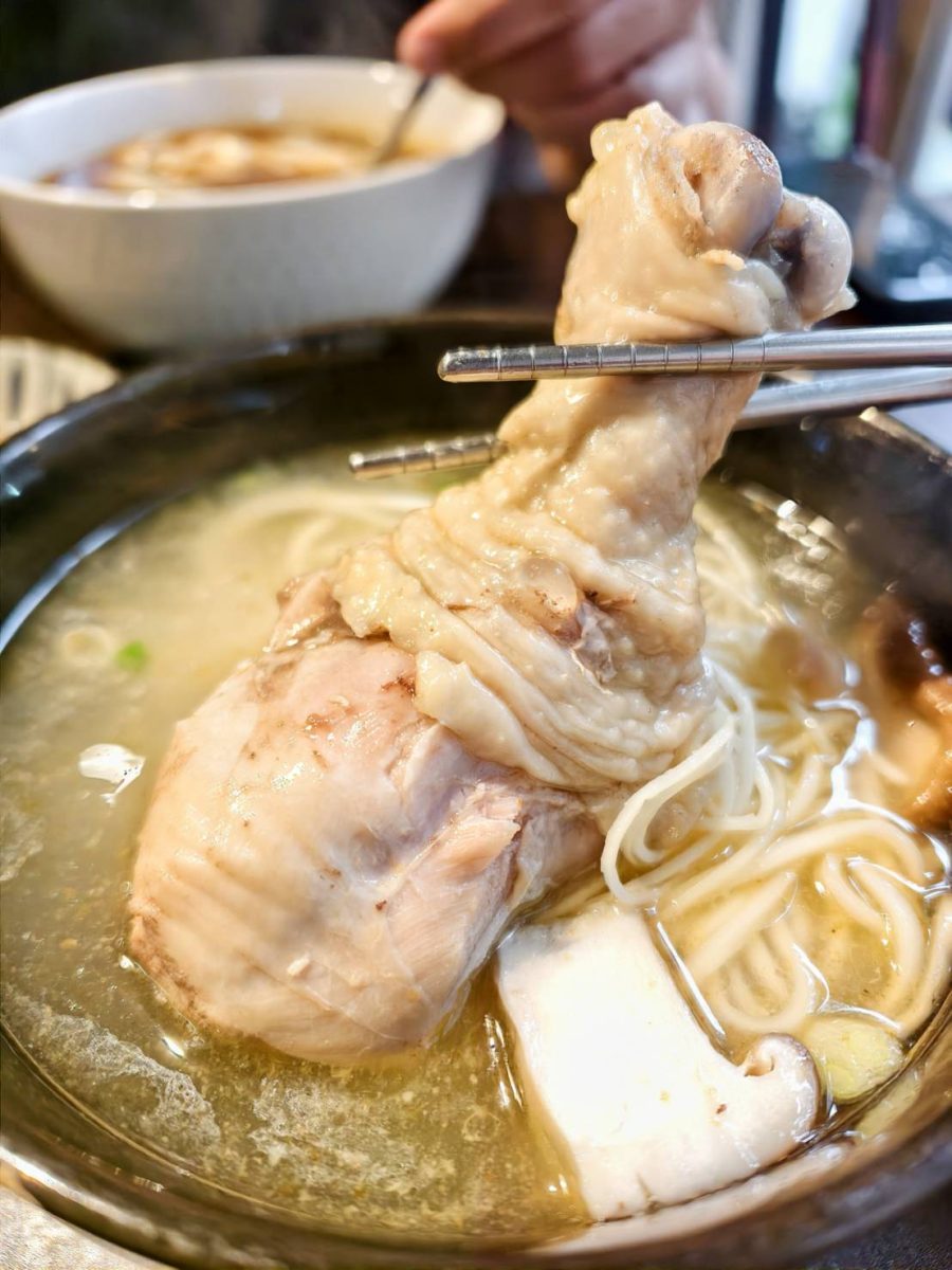 ▼香菇燉雞湯麵,裡頭除了厚片香菇之外,直接給一整隻大雞腿,搭配香濃的雞湯滋味甘醇又鮮美。