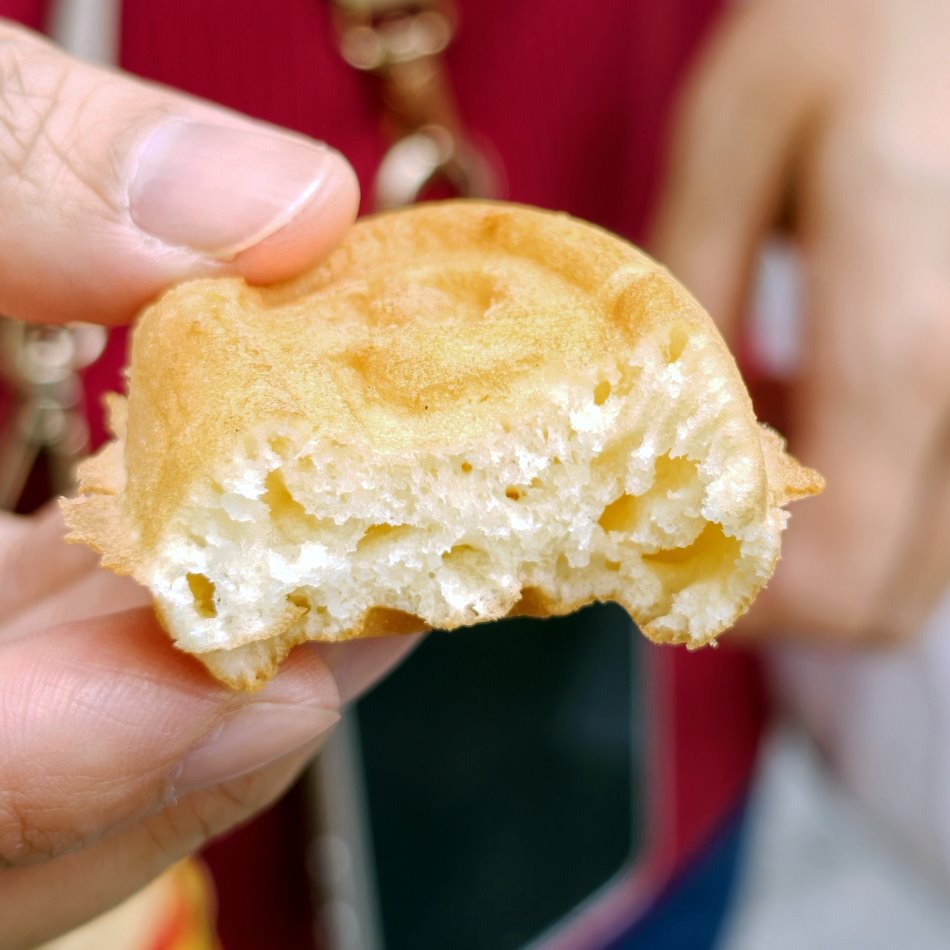 一口咬下,外皮微酥、內裡柔軟的豐富層次立刻在嘴裡化開!裡頭的蛋糕體孔洞細緻、口感綿密Q彈,純粹的蛋奶香在咀嚼間越嚼越香,甜度適中完全不膩口,真的會讓人忍不住一顆接一顆!