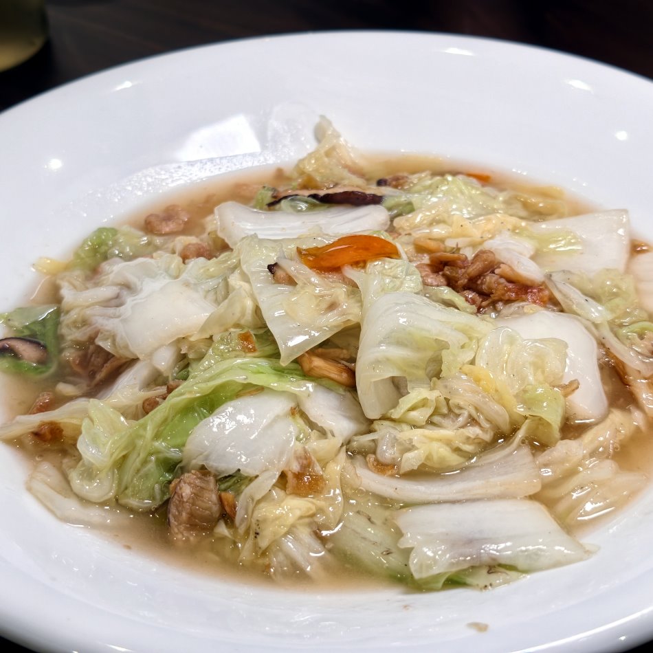 這道經典臺味扁魚開陽白菜是非常道地的手路菜,白菜滷得透爛入味,吸飽了扁魚特有的鹹鮮與香氣。軟嫩中帶著豐富層次,是那種會讓人想起家鄉味的溫潤料理。