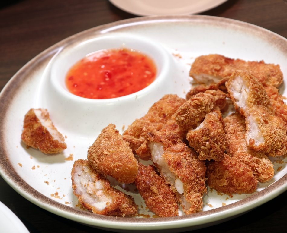 澎湖手作花枝蝦仁排外層炸得金黃酥脆,裡頭用料紮實,每一口都能咬到Q彈的花枝塊與鮮甜蝦仁,真材實料完全騙不了人,外酥內彈的口感非常有層次。