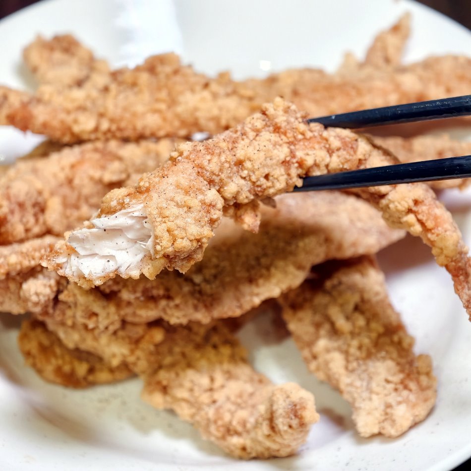 這道 椒鹽七股虱目魚菲力柳條絕對是來到府城必嚐的地道美味!店家特別挑選台南七股新鮮的虱目魚,取其最精華、無刺的「菲力」部位處理成柳條狀,炸到金黃酥脆,看起來就非常討喜。