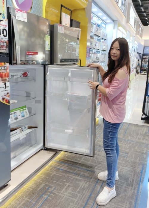 ▼冰箱區也是我們很愛逛的一區,因為我們兩個都愛吃愛煮,冰箱常常滿到一個不行~~加上最近很流行這種多門冰箱,不僅食材可以分門別類存放,而且功能也很齊全,更能完整保留食物的鮮度與美味!尤其我們都喜歡大容量的冰箱,加上家裡人口多,至少要600L才夠用,冰箱打開隨時都要滿滿的存糧才會有安全感啊(笑)!