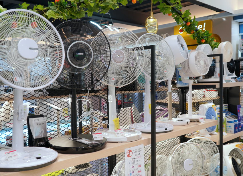▼還有夏天不可缺少的電風扇,有DC立扇、大廈扇、循環扇、無葉片風扇等,許多朋友開空調搭配電扇使用,吹起來更涼爽舒適且又能省下不少電費!