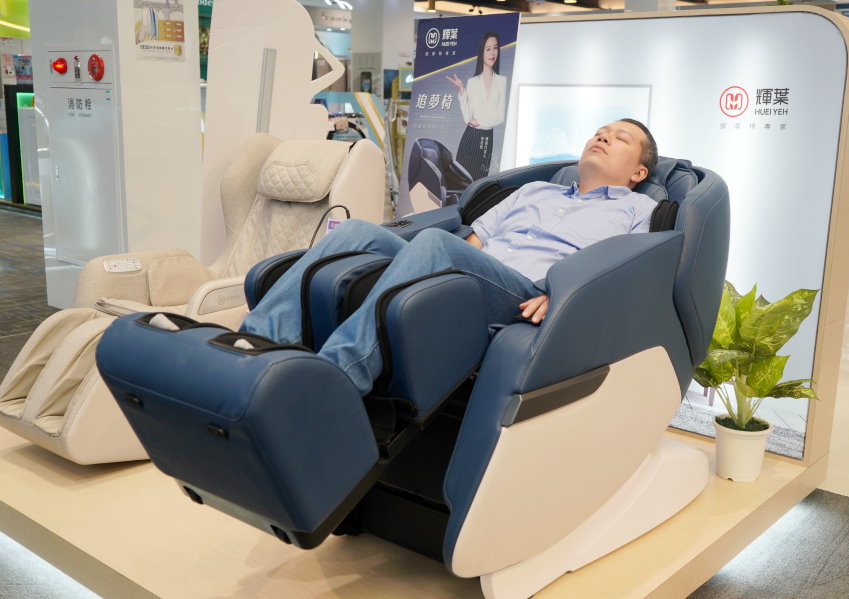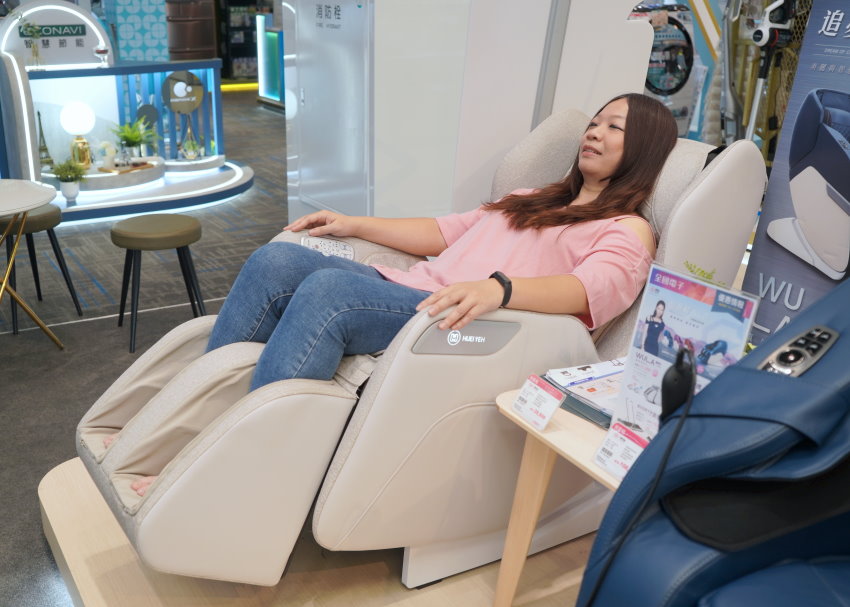 ▼現場也有按摩椅可以試坐試躺,免出門、在家裡就能輕鬆享受按摩的快感~~我們坐到都不想起來了!