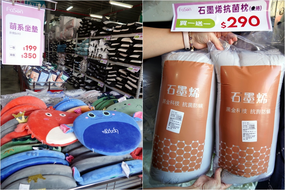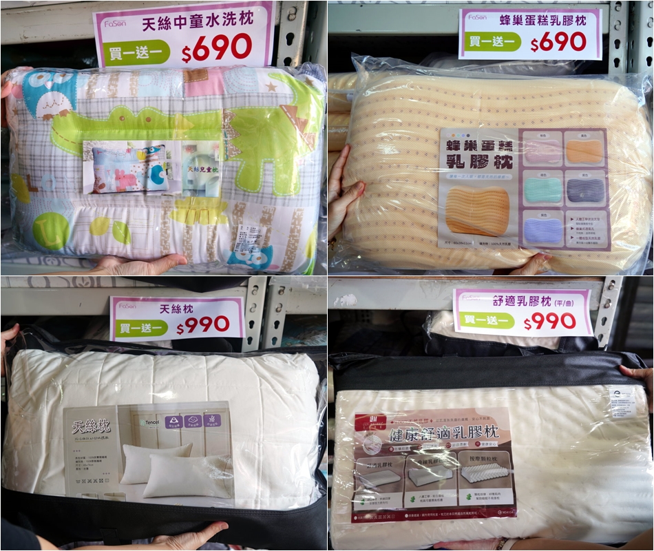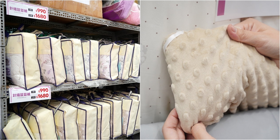 ▼不容錯過的是福利品專區,這裡有枕頭、棉被等展示品,或者是有一些小髒污、車線不均等小瑕疵,上頭也會有詳細標示,價格更是百元起跳,不介意的朋友記得買起來。