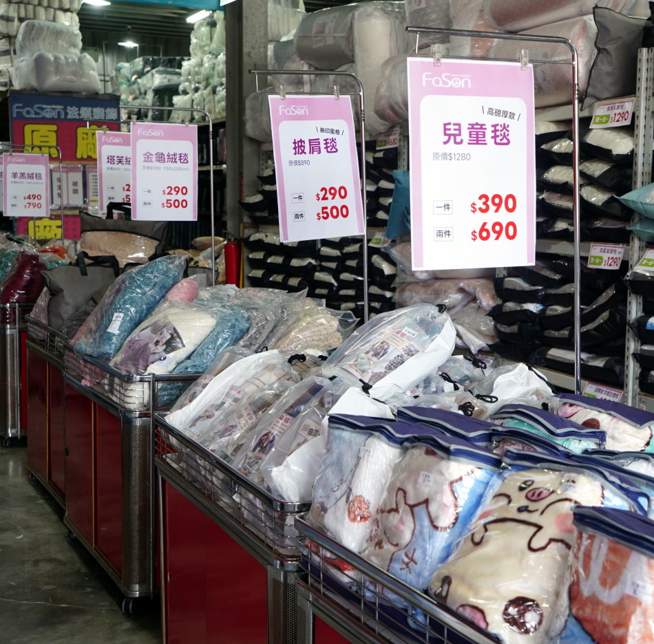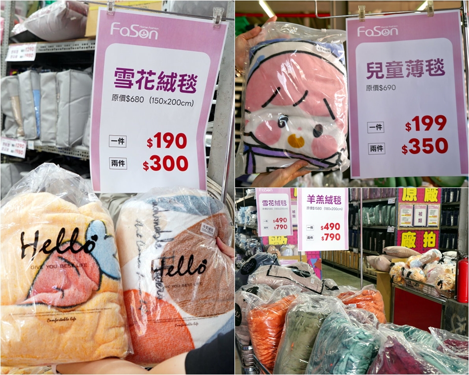 ▼此外還有雪花絨毯、兒童薄毯、羊羔絨毯、披肩毯、金龜絨毯等等,最低190元起,買兩件更划算,這裡真的是毯子控的天堂,各種毯子通通俗給你。