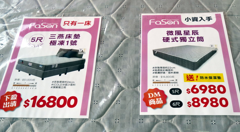 ▼另外還有適合長輩睡的硬式獨立筒也只要6980元起,還加送保潔墊很可以耶;現場也有實品,可以親自來體驗一下。