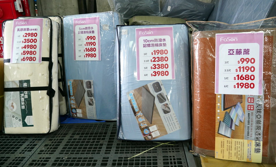 ▼另外還有乳膠床墊、防潑水記憶泡棉床墊、亞藤蓆等,很適合學生族群或是租屋族使用,價格也很平實。