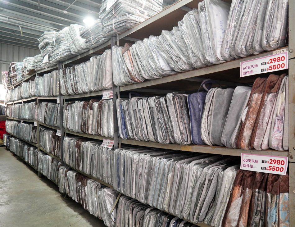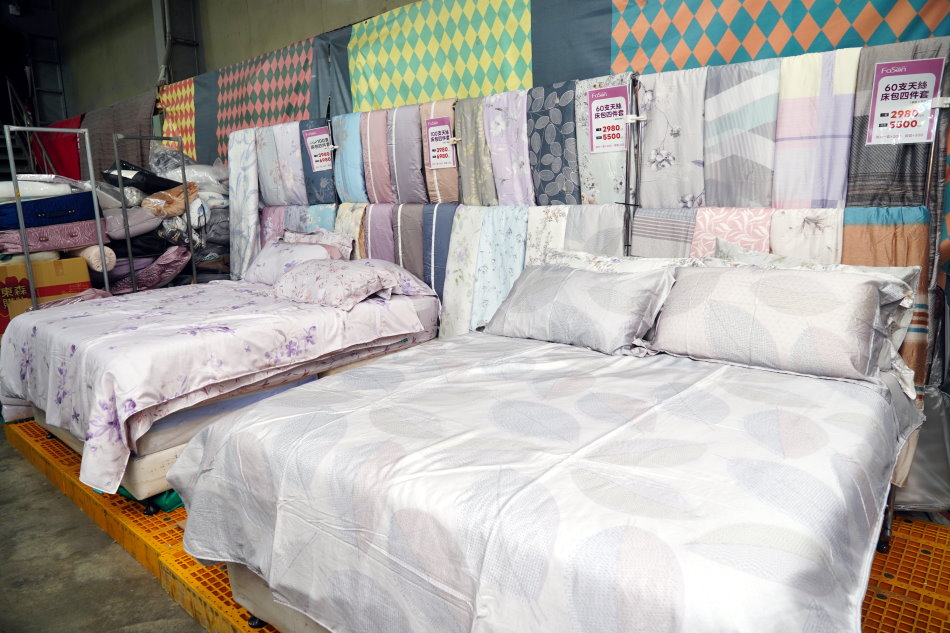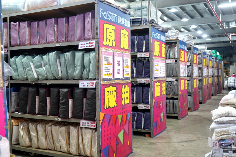 ▼現場還有全部的棉被讓大家可以觸摸感受一下,一旁也掛有標示與價格,喜歡的朋友再到貨架區尋找即可。