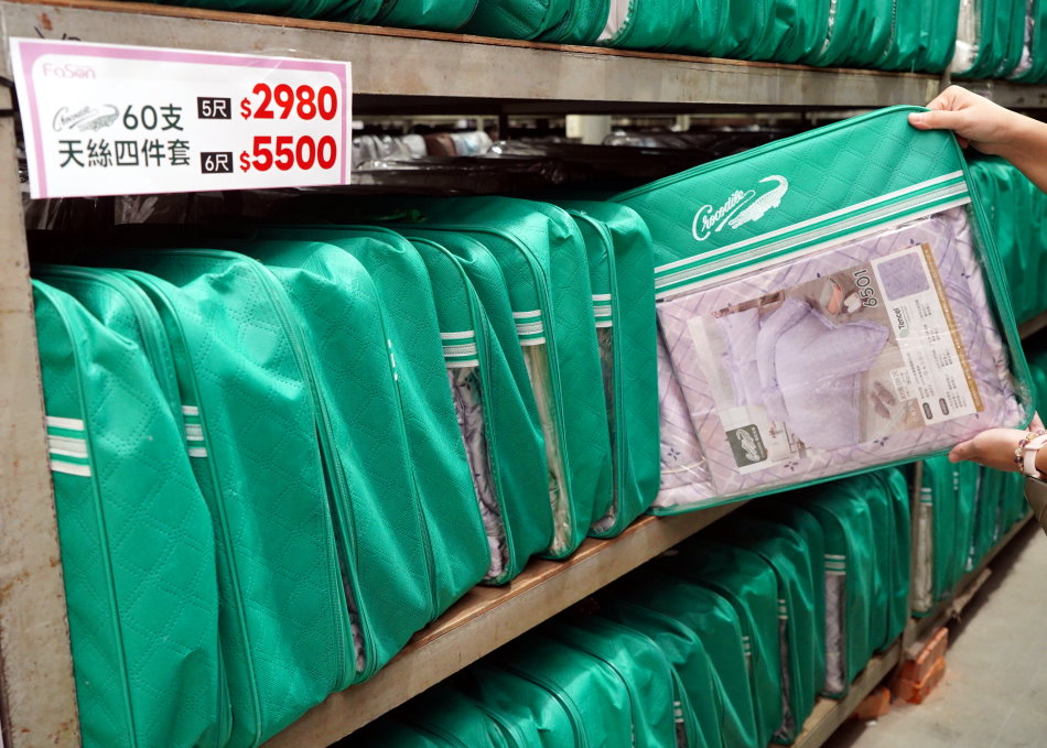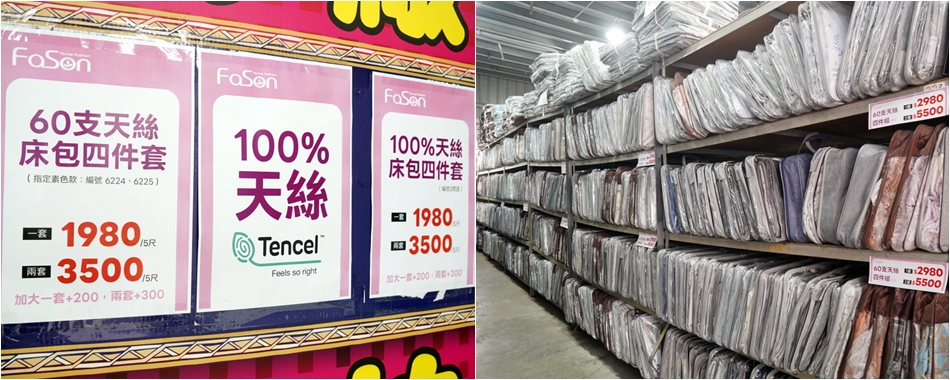 ▼整個貨架疊得像小山一樣高,都是滿滿的60支天絲四件組可以選購,很適合幫全家大小都換成舒適的床包組。