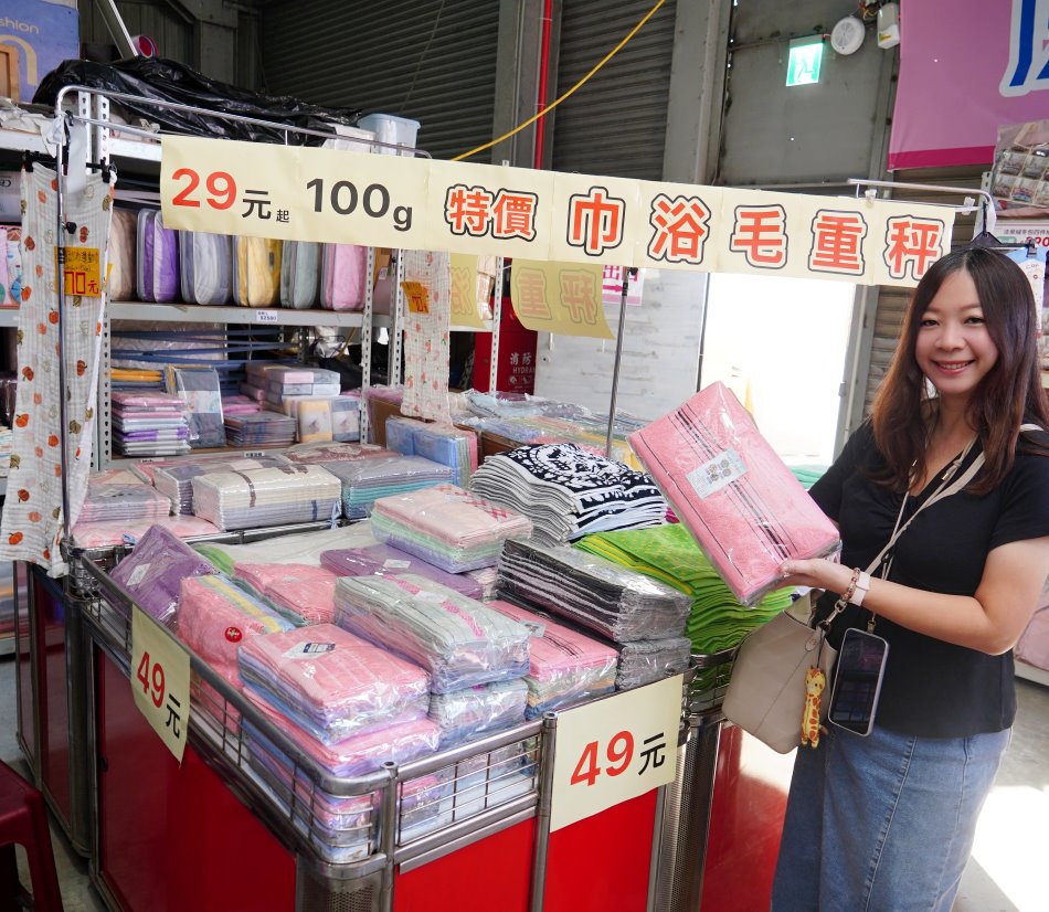 ▼除了寢具之外,這裡還有毛巾、浴巾秤重賣,100g最低只要29元,而且還是台灣製造,花色、品質都不錯,很適合順道買一波。