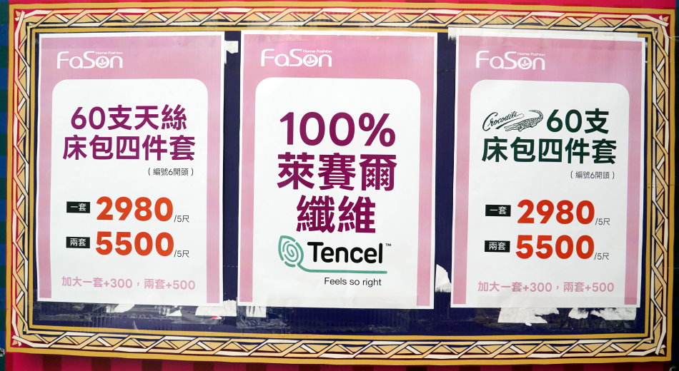 ▼現場也有天絲床包四件套展示,大家可以用手感受一下不同支數的觸感,也更能想像鋪起來的感覺。