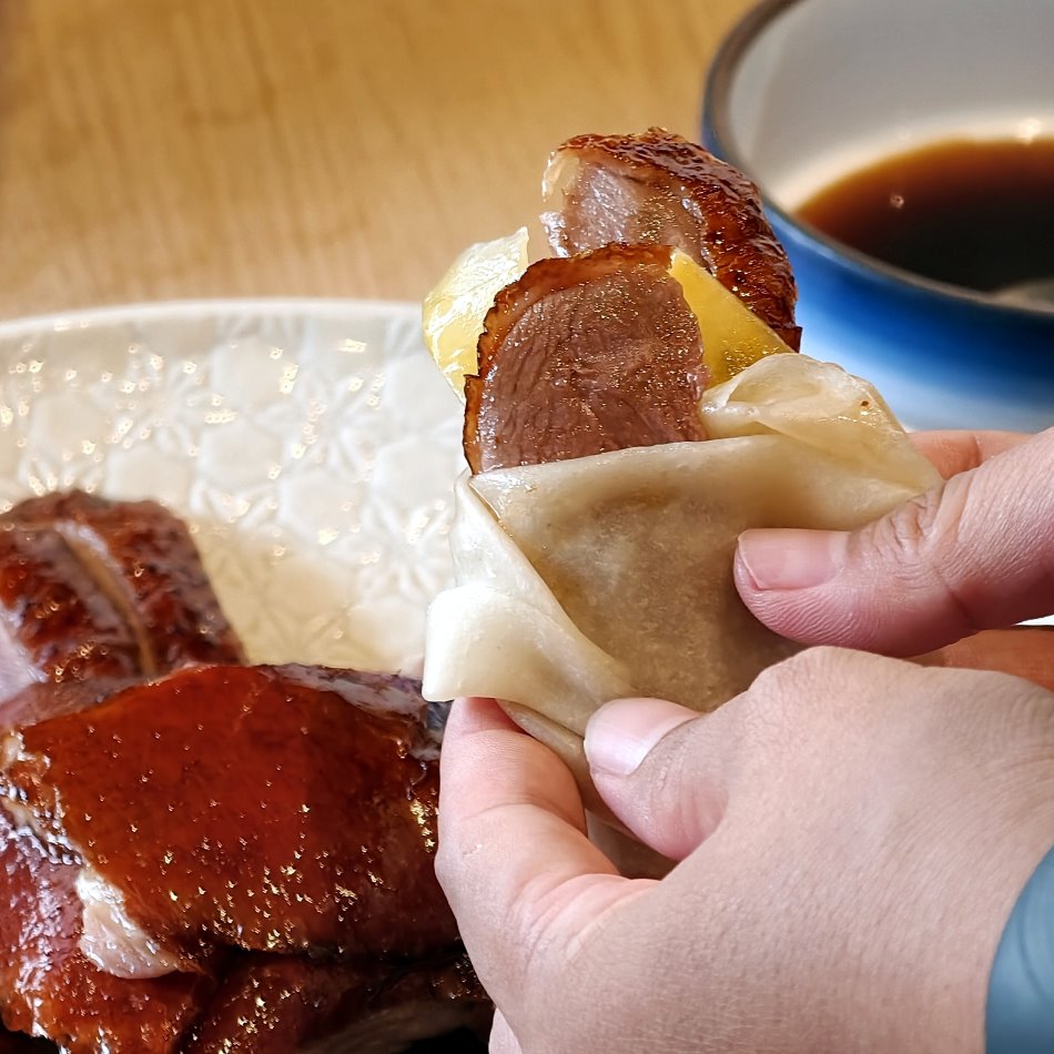 ▼連皮帶肉的切法,在感受脆皮的同時,咬下的是充滿肉汁的粉嫩鴨肉,肉質緊實、帶有彈性,完全沒有任何腥味,反而帶點淡淡的燻烤香氣,單吃就很銷魂!