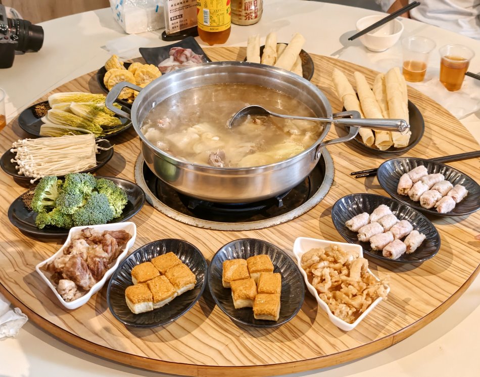 ▼隨鍋會附上基本盤,有豬肉、蛤蜊、蔬菜、冬粉等,吃不夠再去冰箱自取食材;魚冊、骨仔肉都是火鍋好朋友,通通丟下鍋煮就對了!