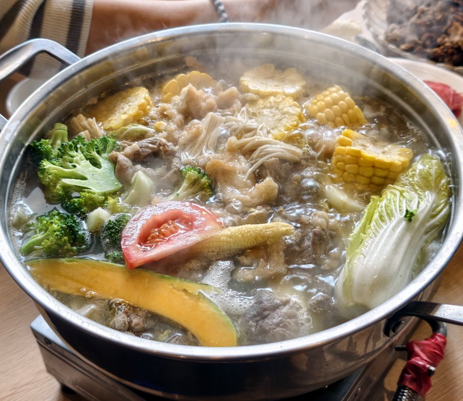 ▼一鍋滿滿的好料吃起來有夠幸福,湯頭越滾越香濃,帶點酸甜甘香的滋味,涮煮什麼都合拍。