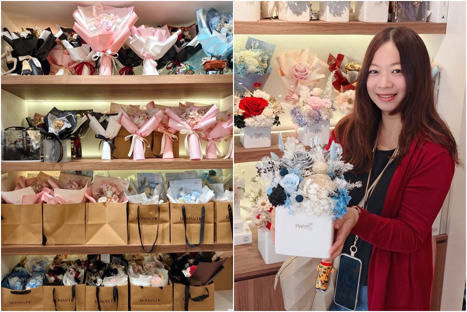 ▼店內主打日本進口的頂級永生花與鮮花,透過特殊保鮮技術,讓花瓣摸起來依舊水嫩柔軟。除了飽和色彩不易隨時間褪色,能長久保存日系美學的優點,更是許多人居家擺飾或長效禮品的首選。