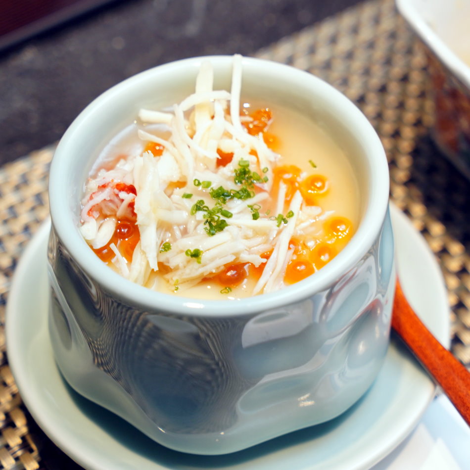 ▼帝王蟹茶碗蒸將金黃蛋液與頂級柴魚高湯融合,蒸製出如滑順、輕盈的質地。藏身其中的帝王蟹肉鮮美又順口,每一口都能感受到自然的甘甜噴發,搭配爆漿鮭魚卵與鮑魚更顯濃郁海味。在熱騰騰的溫潤蛋香中,多層次的鮮甜完美交織, 讓人好愛。