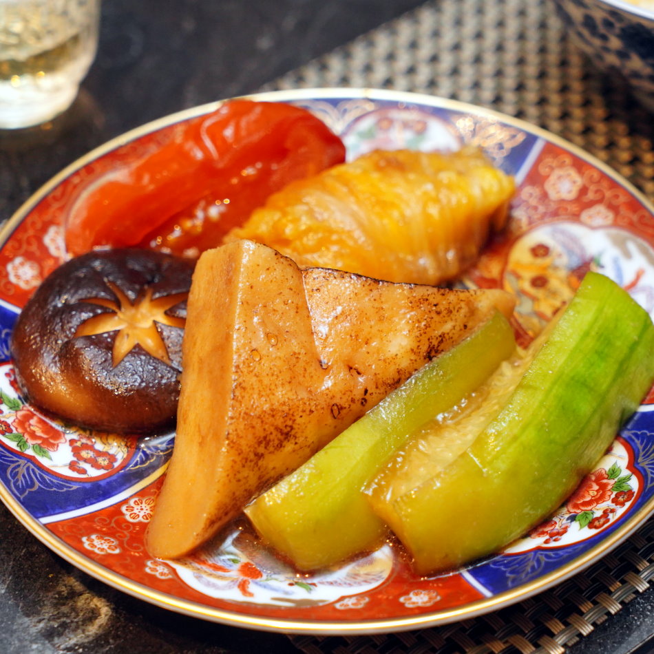 ▼頂級米澤牛煎烤後的金黃油脂與焦糖化醬汁,是蔬菜登場的最佳基底。職人如同打造日式庭園的工匠,將季節時蔬與手作配料依序入鍋,在鑄鐵鍋內鋪陳出迷人的色彩美學。當和牛精華滲透進鮮甜蔬菜,視覺、嗅覺與味蕾瞬間獲得三位一體的極致滿足。