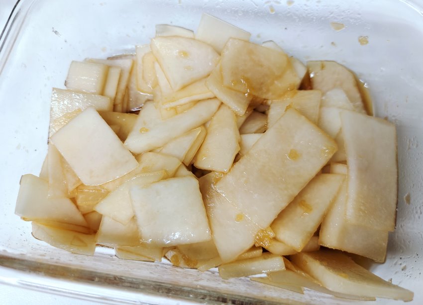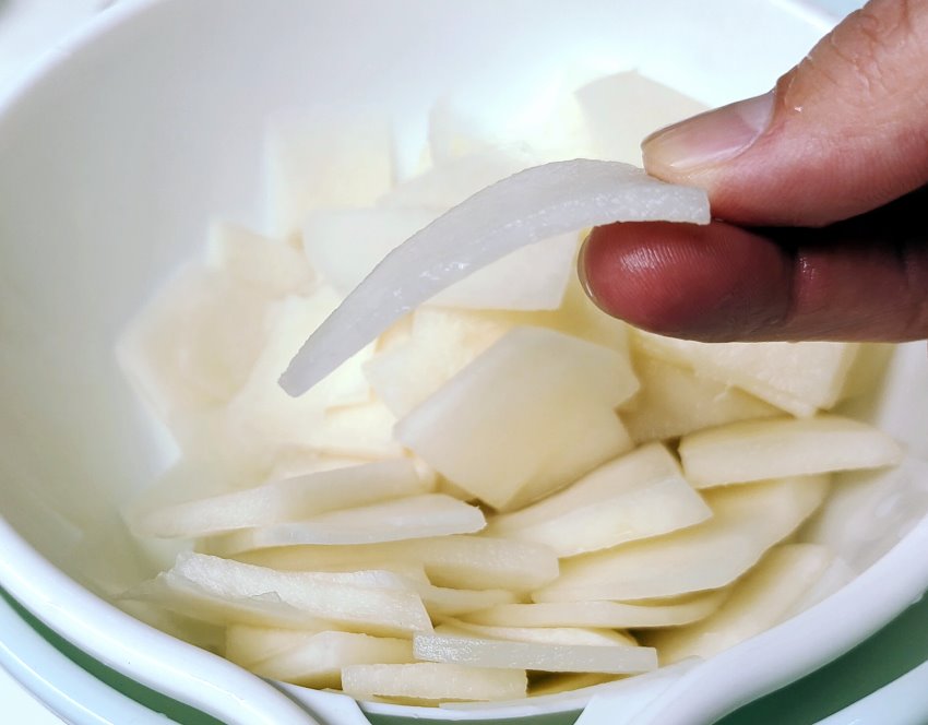 ▼此時大頭菜薄片會變得比較軟~ 就像下圖一樣,淡口感變得更脆了!