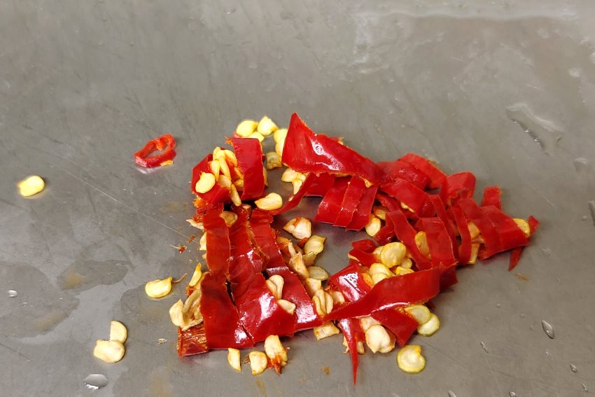 ▼另外切了兩條辣椒,稍微去籽減低辣度後加入,這樣我覺得是中辣的程度,想要小辣請減少為一支。