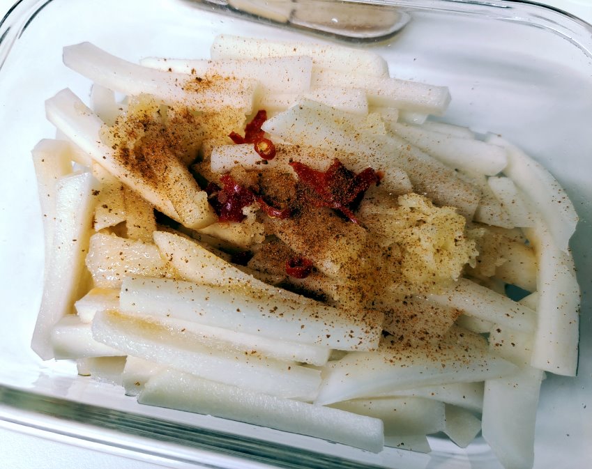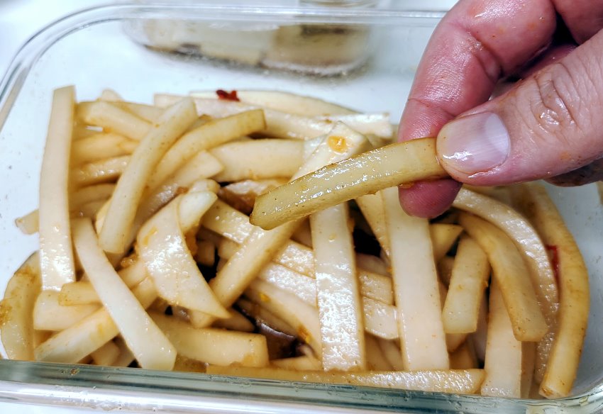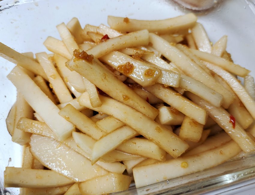 ▼薯條辣味款的涼拌大頭菜來了!