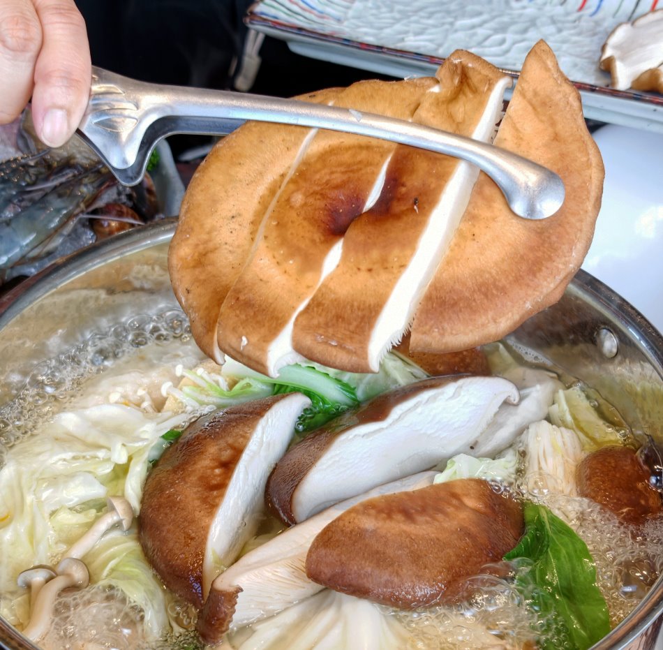 ▼椴木香菇是園區內自行栽種,超大一朵,比小口弟的手還要大,這份量真的很浮誇。(需另外加點)