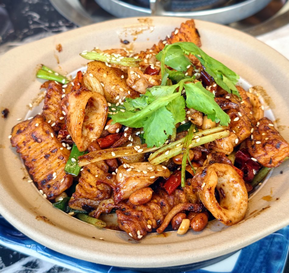 ▼香辣萬里小卷,這道也是相當開胃,裡頭有白花椰菜、小卷、地瓜、甜不辣,被醬汁及調味料完美包裹,吃起來有點類似椒麻口感,微辣又噴香,鮮Q彈牙又夠味,很容易一口接一口。(需另外加點)