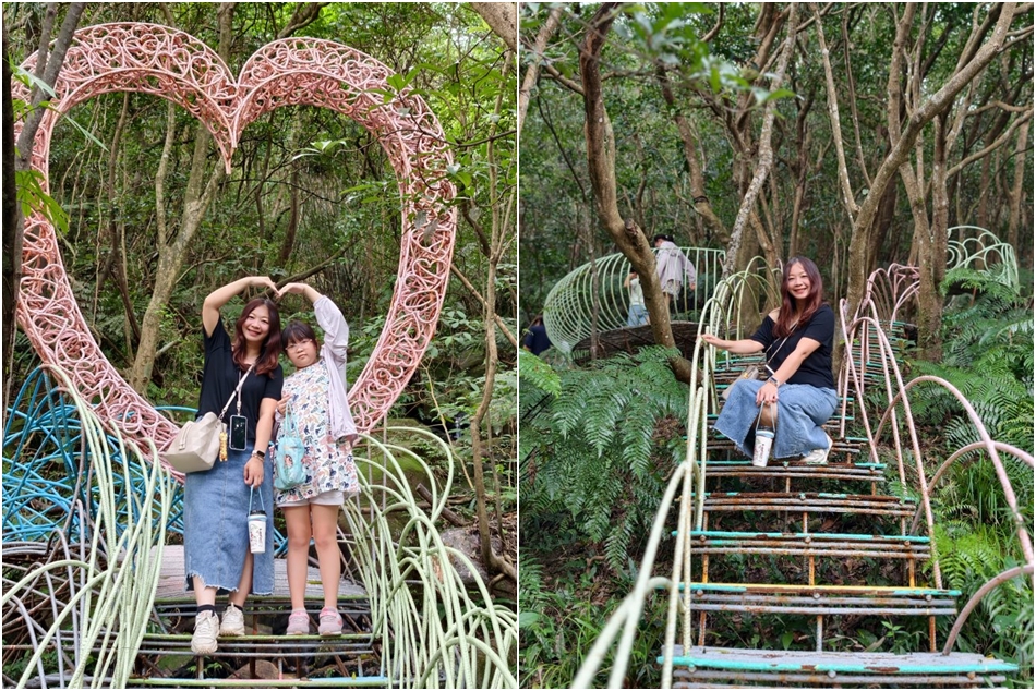 ▼愛心造型的裝置藝術也是由鋼筋所構建,讓大小朋友都能在這裡歇息、拍美照。