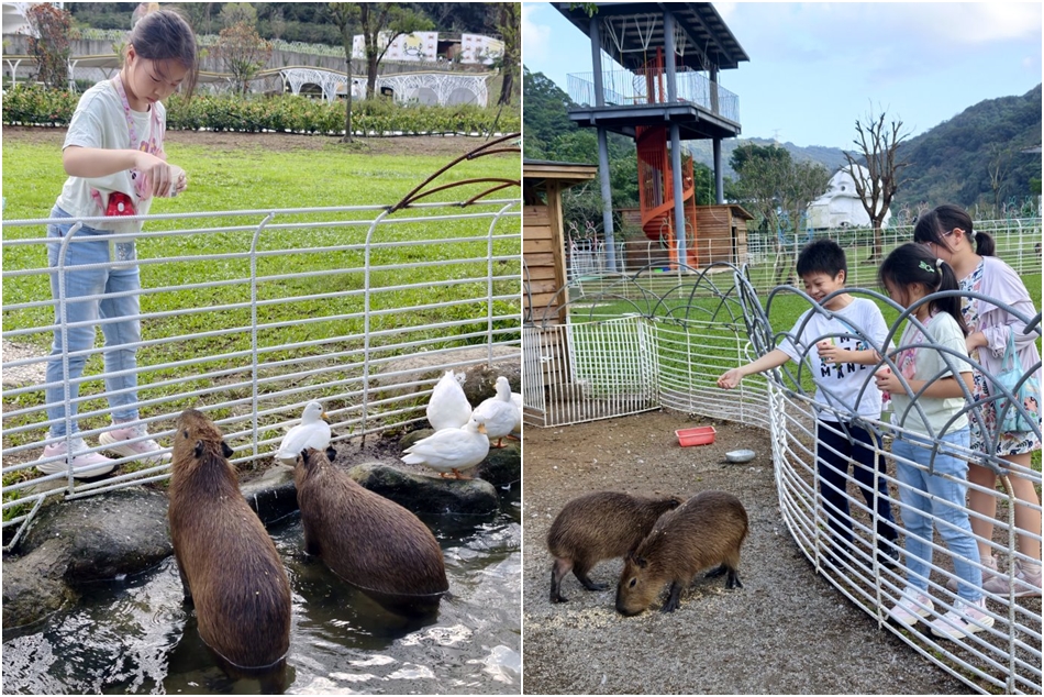 ▼園區另外一個超受歡迎的區域就是可愛動物區啦!這裡有水豚君、柯爾鴨、梅花鹿、日本雞、梵天雞等,都是小朋友的最愛。