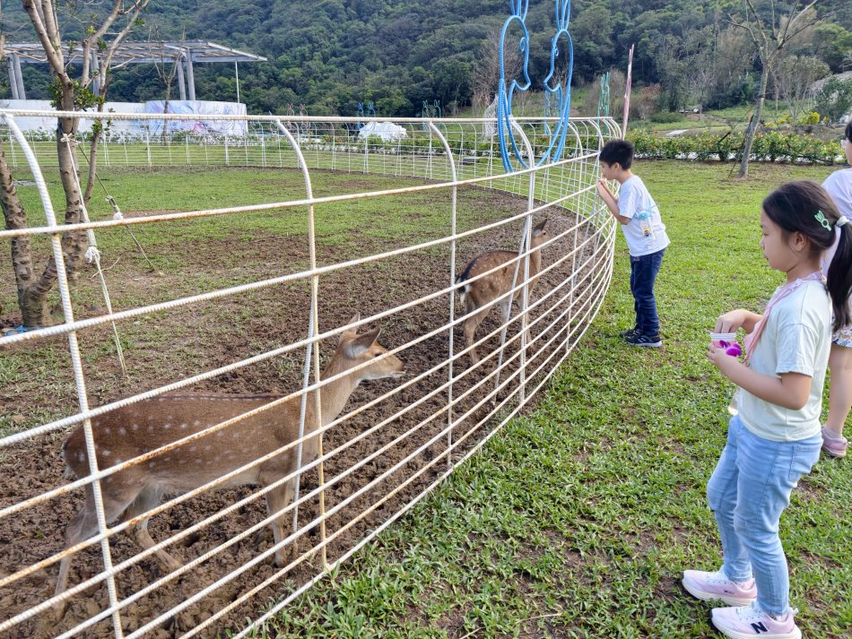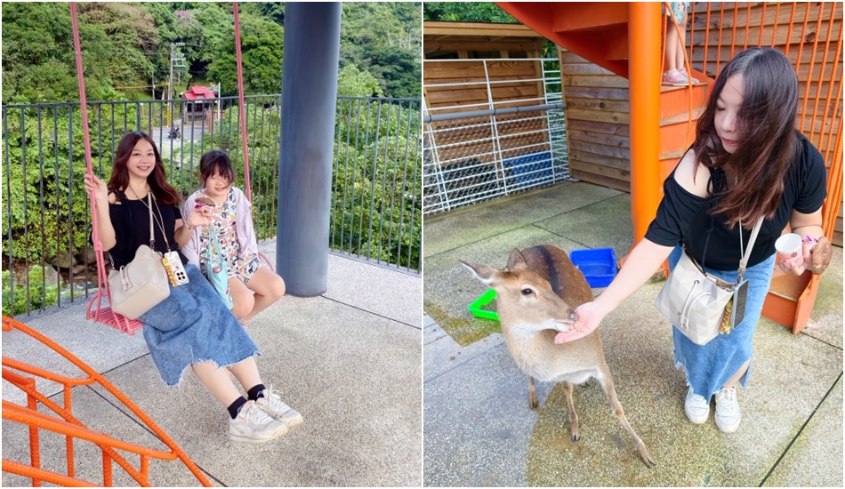 ▼梅花鹿也是溫馴又可愛,把飼料放在手上他們就會過來享用,這時候也是近距離拍照的好機會;此外也別錯過觀景平台上的盪鞦韆,俯瞰園區的景色超美,而且還能聽見山林小溪的淙淙水聲,整個很療癒。