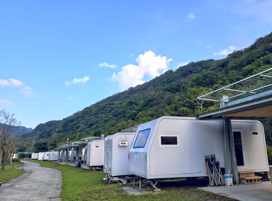 ▼這裡還有一整排的露營車,很適合帶小朋友來這裡露營玩耍;現在還有推出平日一泊一食的露營車優惠專案,每車4人只要5800元,就能享全新露營車住宿一晚+早餐,還外加生態導覽一次(下雨則會改成其他室內活動),還可以暢遊園區設施,真的很超值,想住的朋友可以趁優惠來體驗看看。