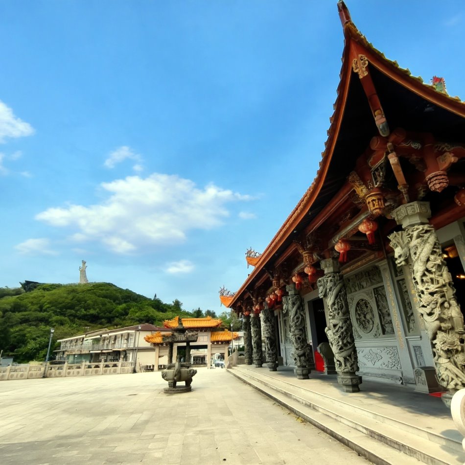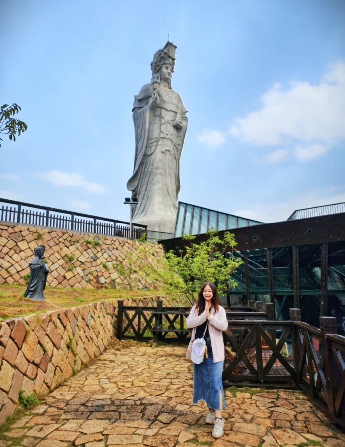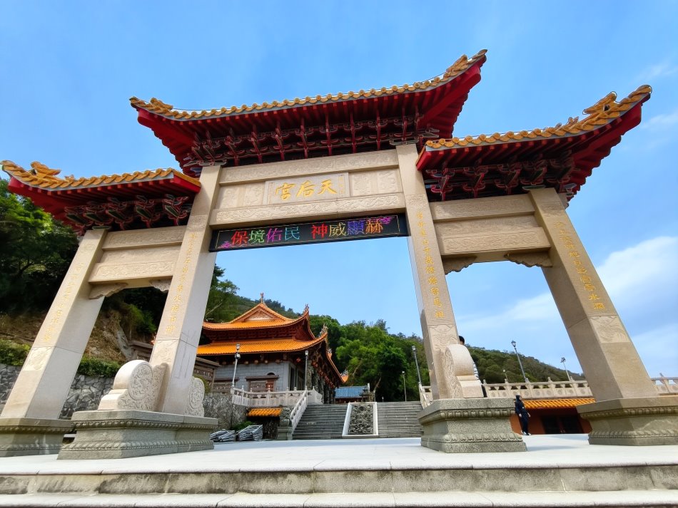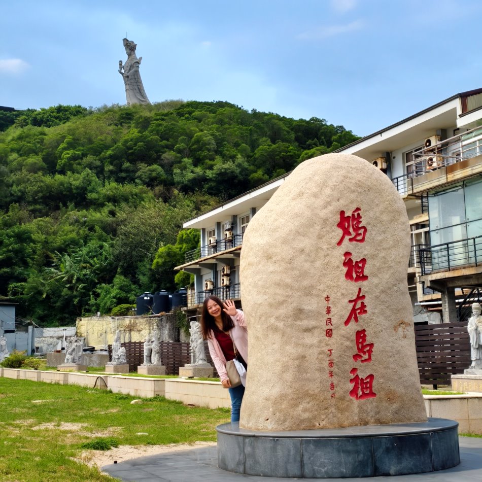 ▼馬祖境天后宮旁還可以拍到「媽祖在馬祖」的地標,連媽祖巨神像都能一起入鏡。
