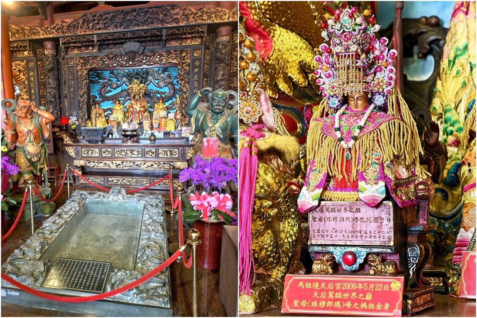 ▼最特別的是這裡相傳是媽祖的靈穴,不僅無法搬移或覆蓋地磚,而且也沒辦法替墓石彩繪著色,擲筊請示媽祖才知道這是媽祖的諭旨,所以特別以強化玻璃蓋住靈石,並立碑記紀念;另外這裡還有一尊曾經登上聖母峰的金身媽祖,由馬祖籍畫家及登山家李小石帶著金身媽祖登上世界之巔,也供奉在此供民眾參拜。