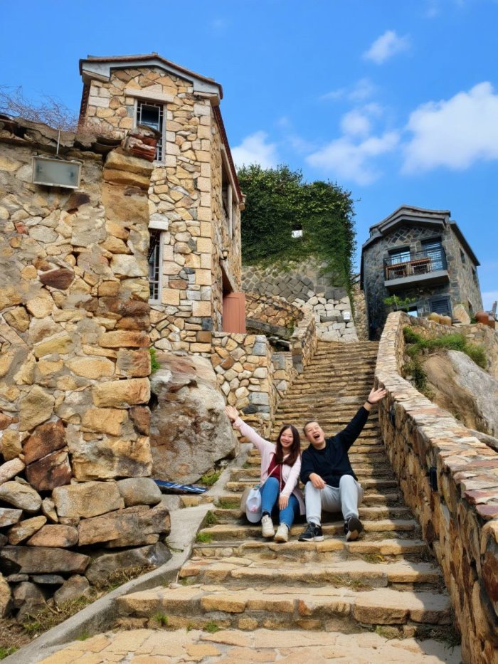 ▼這裡的古厝群大多為閩東建築,採用厚實的花崗岩搭配紅色屋瓦,沿著地勢而建的石頭屋,屋瓦上頭還會壓上石頭,防止瓦片被強風吹走,也是這裡獨特的景觀。