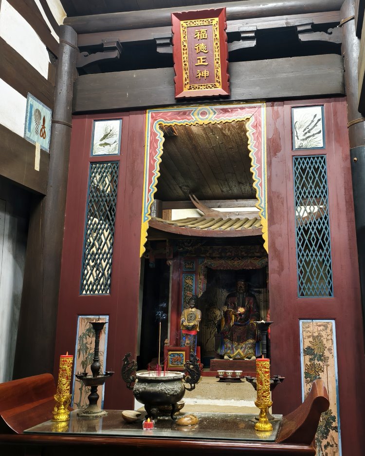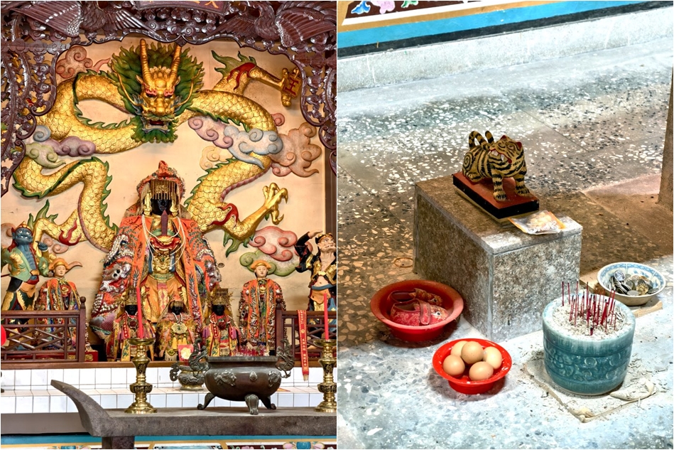 ▼此外東西廂的神龕也以少見的廟中廟形式呈現,其中福德正神也是非常特別,是身著蟒袍、戴官帽的土地公,旁邊的童子更是手持「禮記」,與一般常見的進寶童子、招財童子完全不同;因民間信仰普遍認為土地公會隨著當地士子的功名而升級,也就是說當地居民有中狀元、進士、舉人等,土地公才能改戴官帽,所以也有勸學向上、鼓勵求取功名的涵義存在。