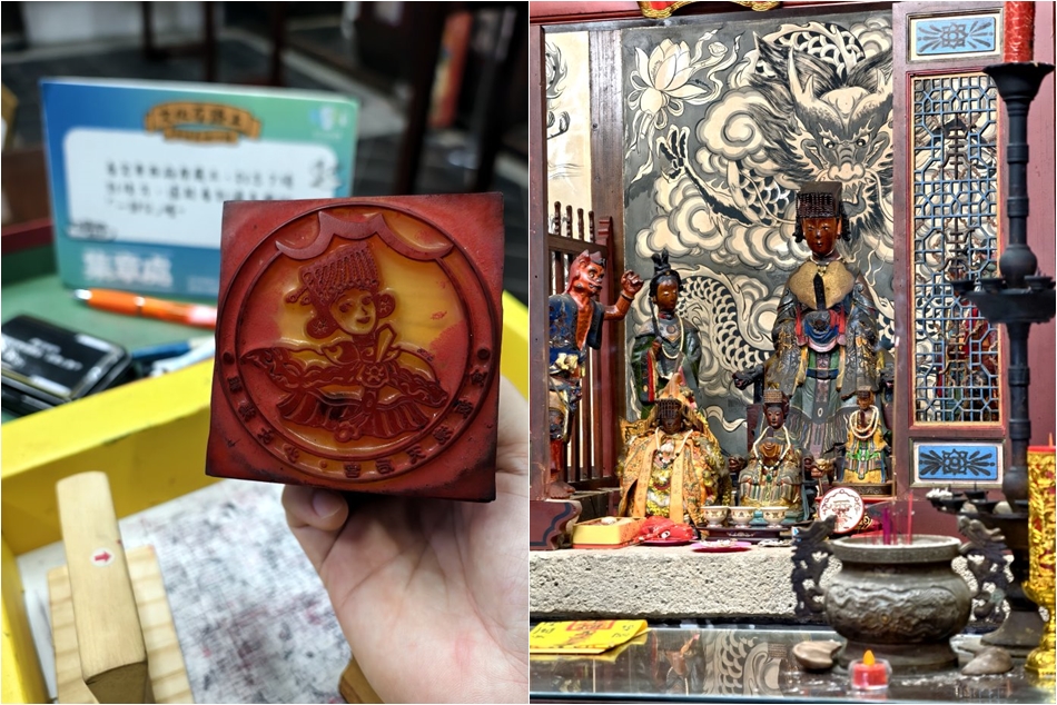▼進廟前還要有獨特的淨身儀式,淨身完才能參拜;最特別的就是這裡的媽祖為全台少見的泥塑「少女媽祖」,不僅擁有瓜子臉,而且相貌清秀、五官柔美,與台灣常見的聖母形象截然不同;一旁也有媽祖意象的印章可以收集,來到這裡千萬不要錯過!