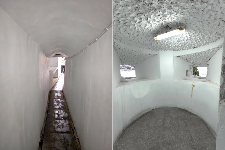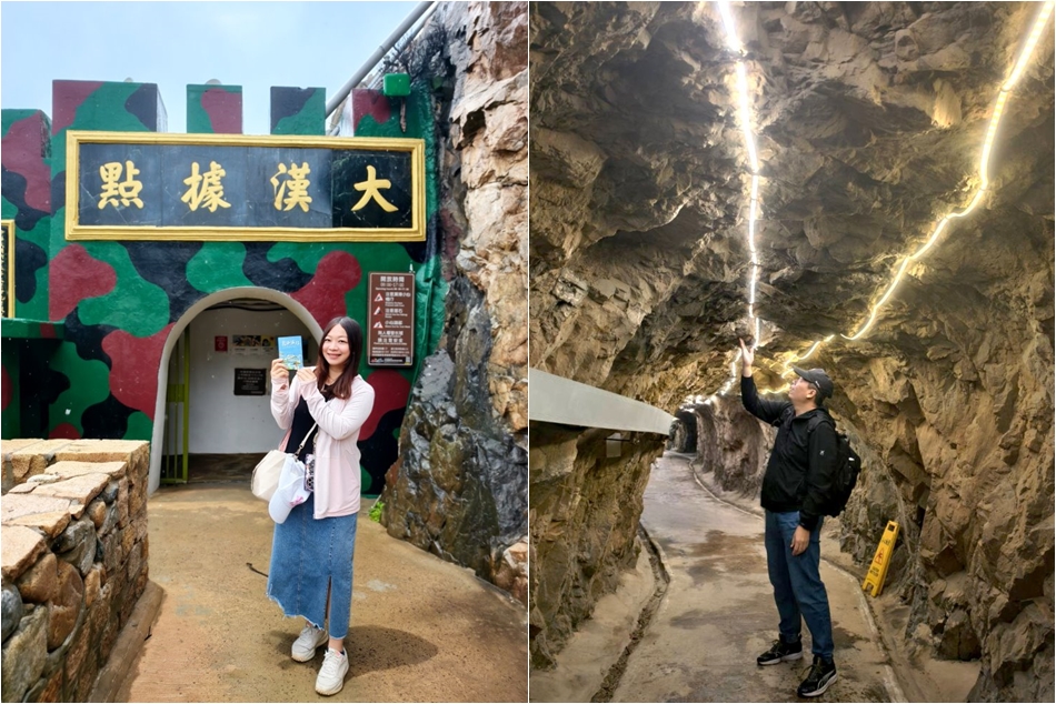 ▼大漢據點就位於南竿遊客中心旁,不同於其他軍事據點,這裡從上到下有三層坑道,最上層為軍方連部,第二層為生活圈及預備機槍陣地,第三層有高砲砲台、簡報室、中山室、庫房、儲藏室等空間,走在蜿蜒的坑道裡,不難想像當年士兵在幽暗的空間夾雜著緊蹦氣息的肅殺之氣,已閒置的機槍砲射口宛如觀景窗般,讓人可以探向外頭遼闊的世界。