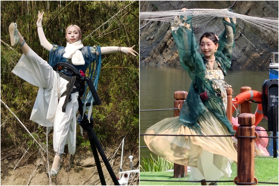 ▼只見舞者除了在浮島上賣力演出之外,竟然還可以飛天遁地有夠厲害,看得大家都嘖嘖稱奇啊!