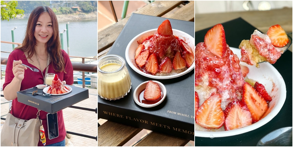 ▼我們把草莓冰外帶到明德水庫湖畔享用,美好的風光搭配漂亮的大湖草莓雪糖冰,一整個好Chill;除了草莓雪糖冰之外,另外還附上烤布蕾及自製的草莓果醬,都可以搭配享用。