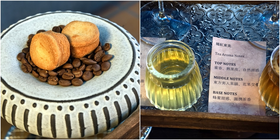 ▼最後選的是喝得到青蘋果清香的蘋光夏晴、蜜香與熟果皮香交疊的嫣紅東美,前者喝起來清新淡雅又清爽,後者厚實圓潤尾韻甘甜,兩種都很滑潤順口;柚子沙布雷也是店家的招牌之作,外皮酥鬆、內餡帶有柚子的果香與QQ的口感,原來是保留柚子皮的做法,吃起來香甜不膩很可以耶!