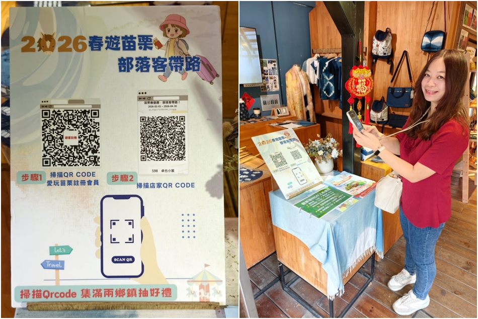 ▼2026春遊苗栗 部落客帶路 抽獎活動,大家記得先註冊會員,只要遊客到部落客介紹的地點,踩點掃描QRCODE打卡,集滿兩個鄉鎮,就有一次抽獎機會,集滿四個鄉鎮,就能抽兩次,集滿六個鄉鎮,就能抽三次……以此類推,獎品獎項豐富,像是地方特產、住宿券、餐券等;活動將於2026/4/30抽出幸運得主,得獎者將電話通知並另公佈於苗栗縣觀光協會FB粉絲專頁,大家一定要記得發落一下唷!