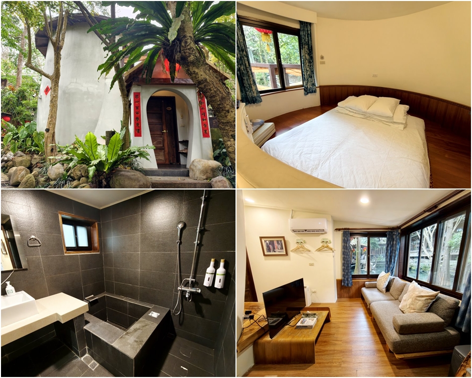 ▼做完藍染後可以在園區裡漫步,或者是直接住一晚更能進行深度旅遊;卓也小屋的住宿特色,最迷人的地方在於它將「傳統農村元素」與「現代夢幻美學」完美結合,住在裡面不只是過夜,更像是在一座森林小鎮裡生活。