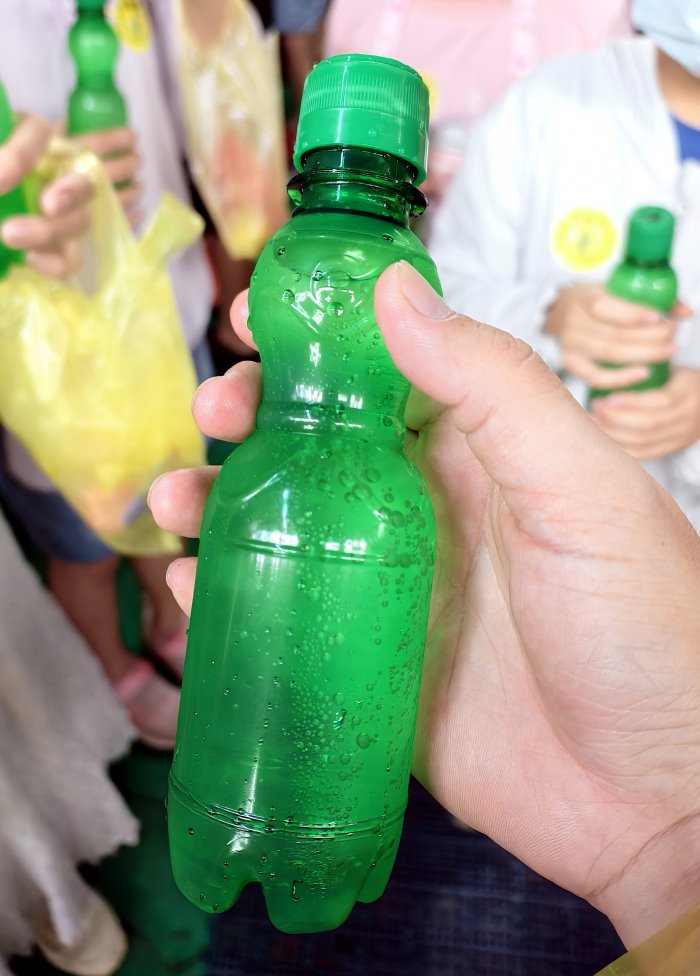 ▼自製彈珠汽水成功啦~~雖然外瓶看起來都一樣,但自己做的就是特別好喝!